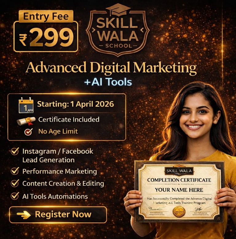 Skill Wala School is a next-generation learning platform dedicated to preparing students and professionals with real-world, job-ready skills beyond traditional academics.