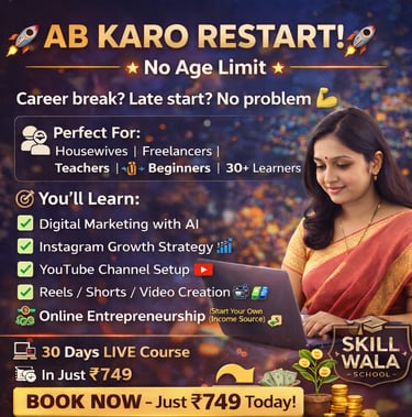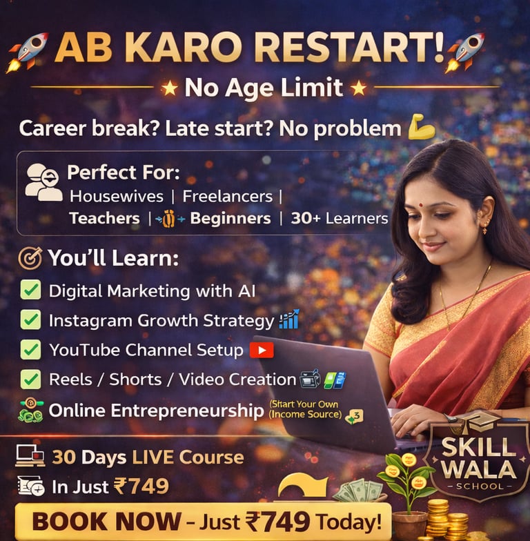 AB KARO RESTART! 🚀 ✨ No Age Limit ✨ Career break? Late start? No problem 💪 👩🏫 Perfect For: Housewives | Freelancers | Teachers | Beginners | 30+ Learners
